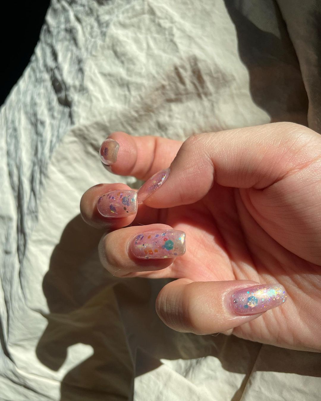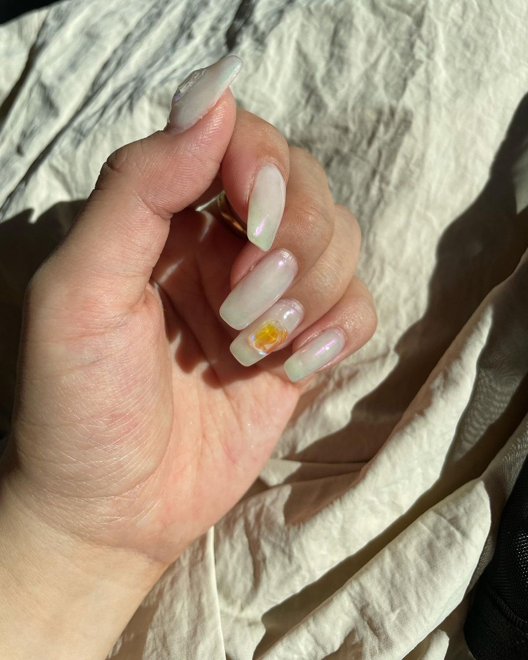 nail🤍 @nailist_mika ちゃんがやってる ネイルが可愛かったから色違いにした💐 左手のクリアオーロラみたいなパーツ キラキラして可愛いの🥺💎 夏っぽくて気に入ってる🌻 Mikami YuaYua Mikami三上悠亜