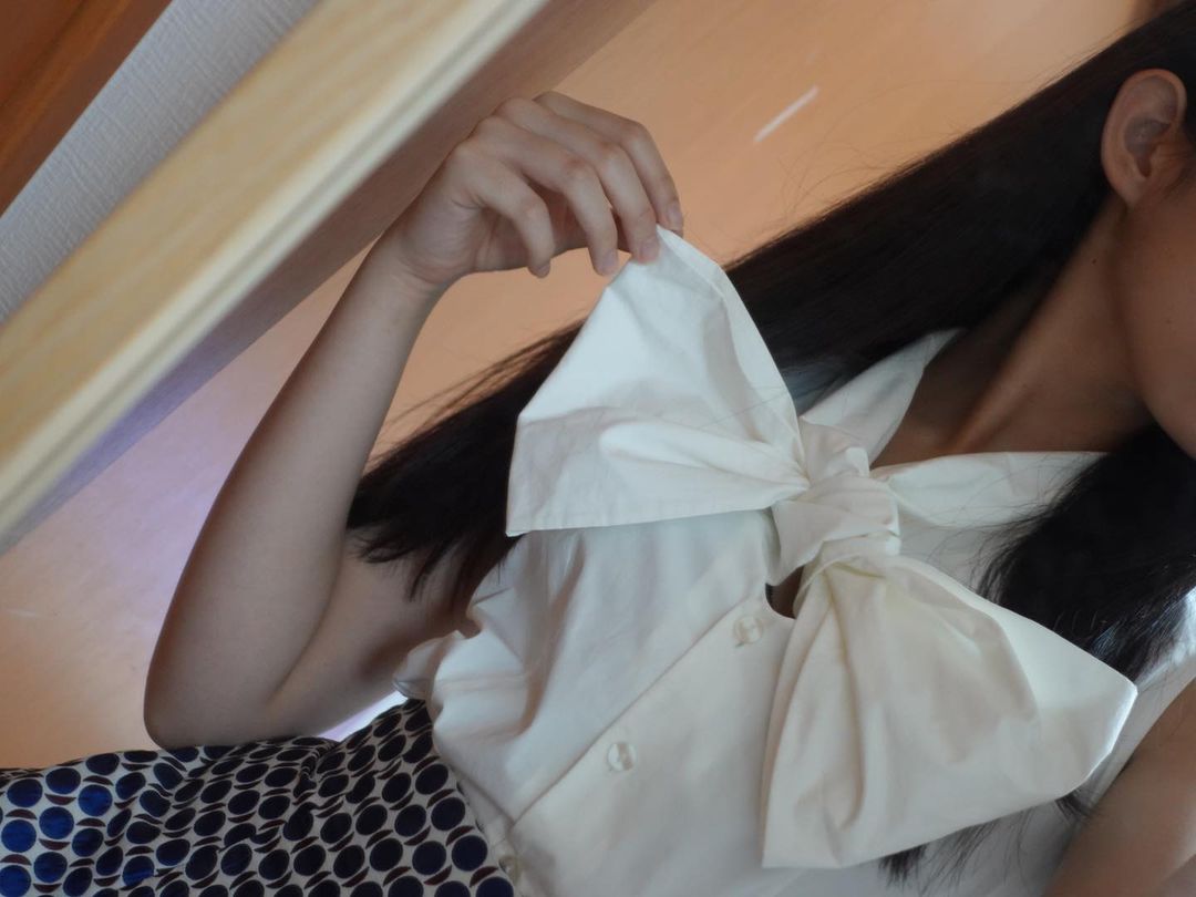 お母さんからお下がりのお洋服可愛すぎ🎀🤍 白のブラウスでキュッと結んだら大きなリボンになるお気に入り✨✨ 白だから汚さないようにしよ〜笑 #ひなたんす #hinata_matsumoto#松本日向Hinata MatsumotoMatsumoto Hinataひなたんす