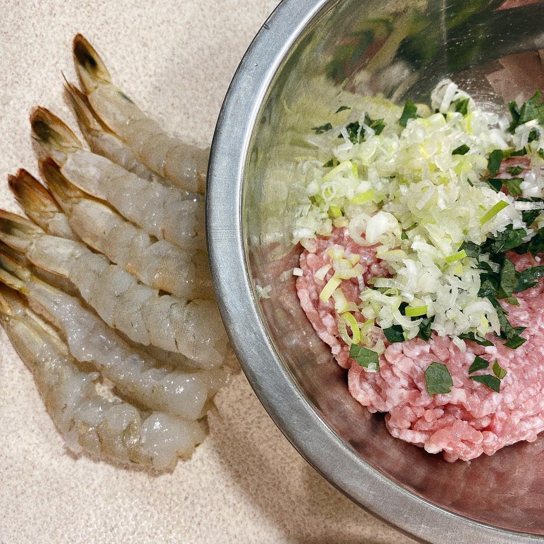 海老の包み蒸し餃子。