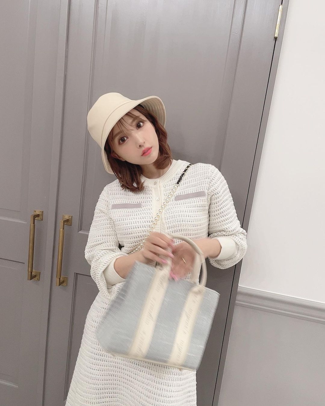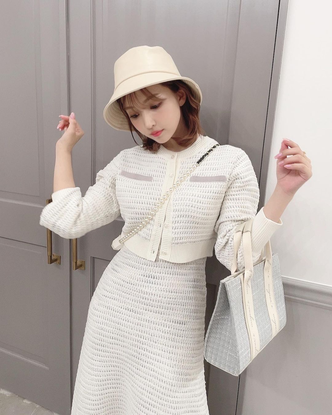 今日の私服。 新作のニットアップ🤍 もうすぐ発売です! そしてそして、オリジナルのトートバッグ作りました👜 使いやすいし、ツイードで可愛いの🥺 このコーデおすすめです♡ Mikami YuaYua Mikami三上悠亜