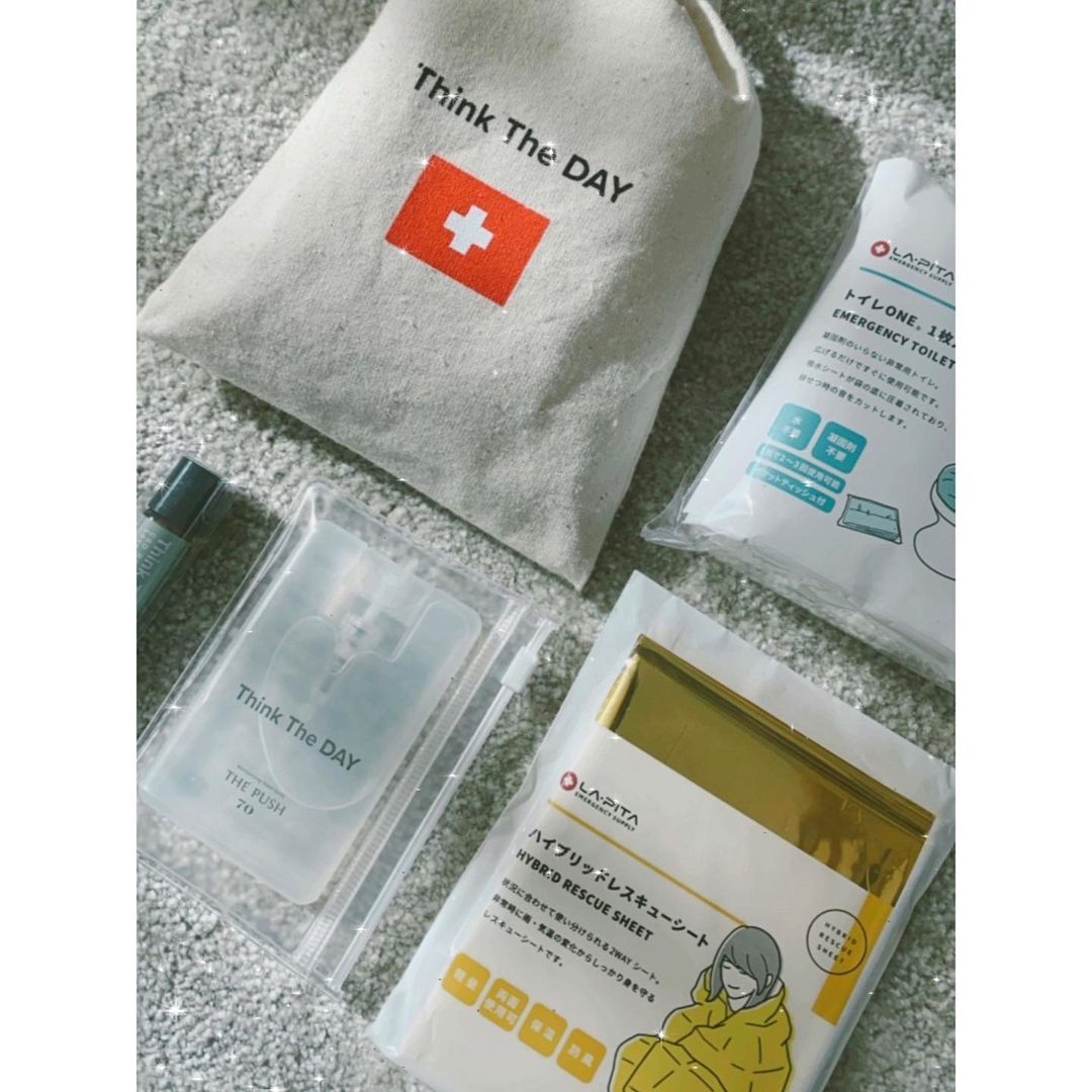 @_thinktheday でも引き続きECサイトにて自宅や車への常備用の防災セットや、出先で災害にあった時のための携帯用ポーチ型の簡易防災セットの販売を行いますが、他の会社でも沢山の防災グッズが販売されておりますので、これを機に防災の点検や見直しをお願い致します。