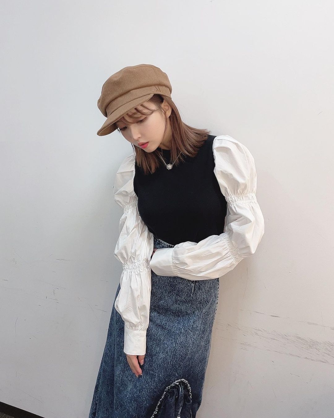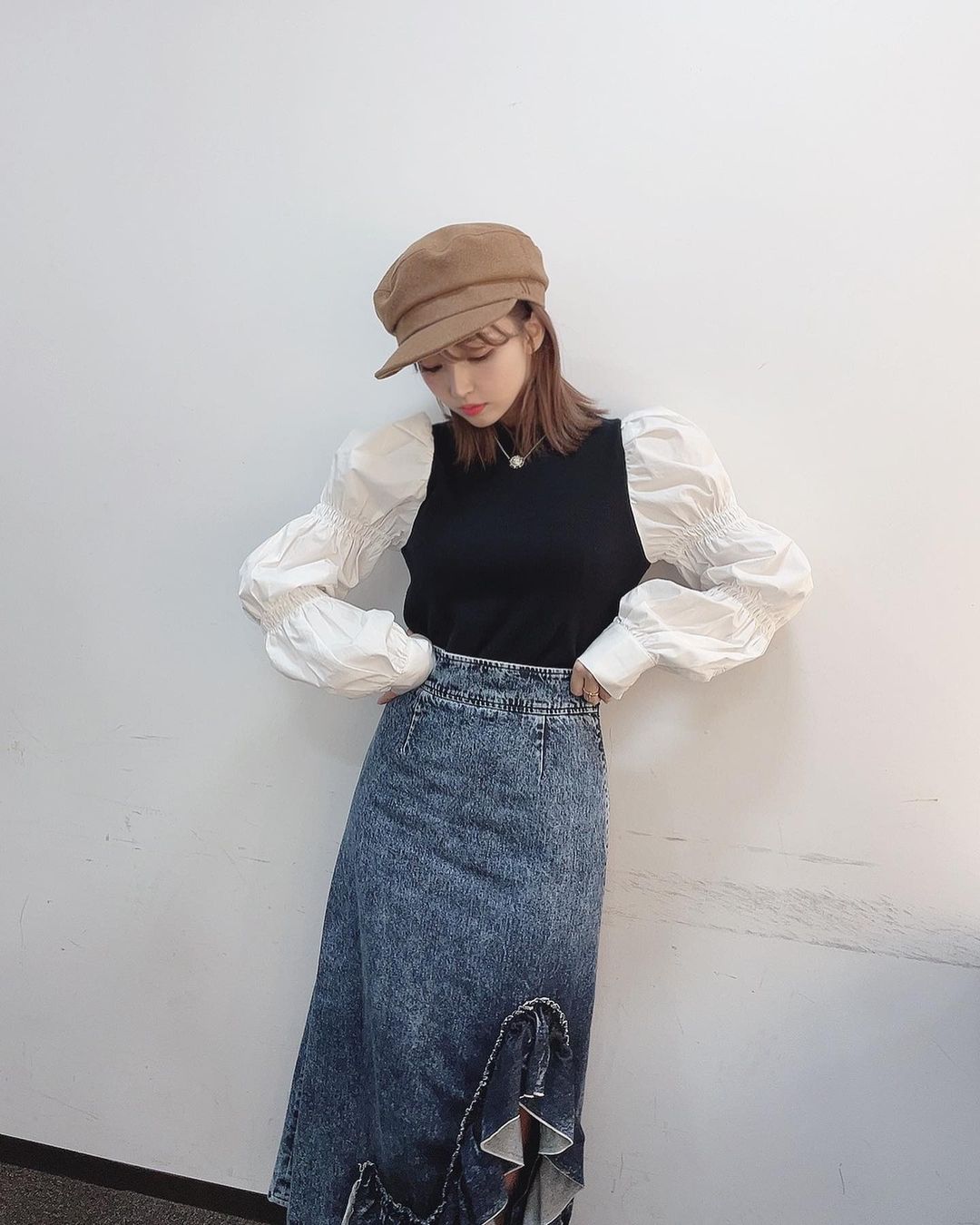 @三上悠亜: 私服。 miyour’sのお袖がぽんぽんしてる レイヤードトップスかわちい! そしてこのキャスケットは、、 お楽しみに♡ @miyours.jp…