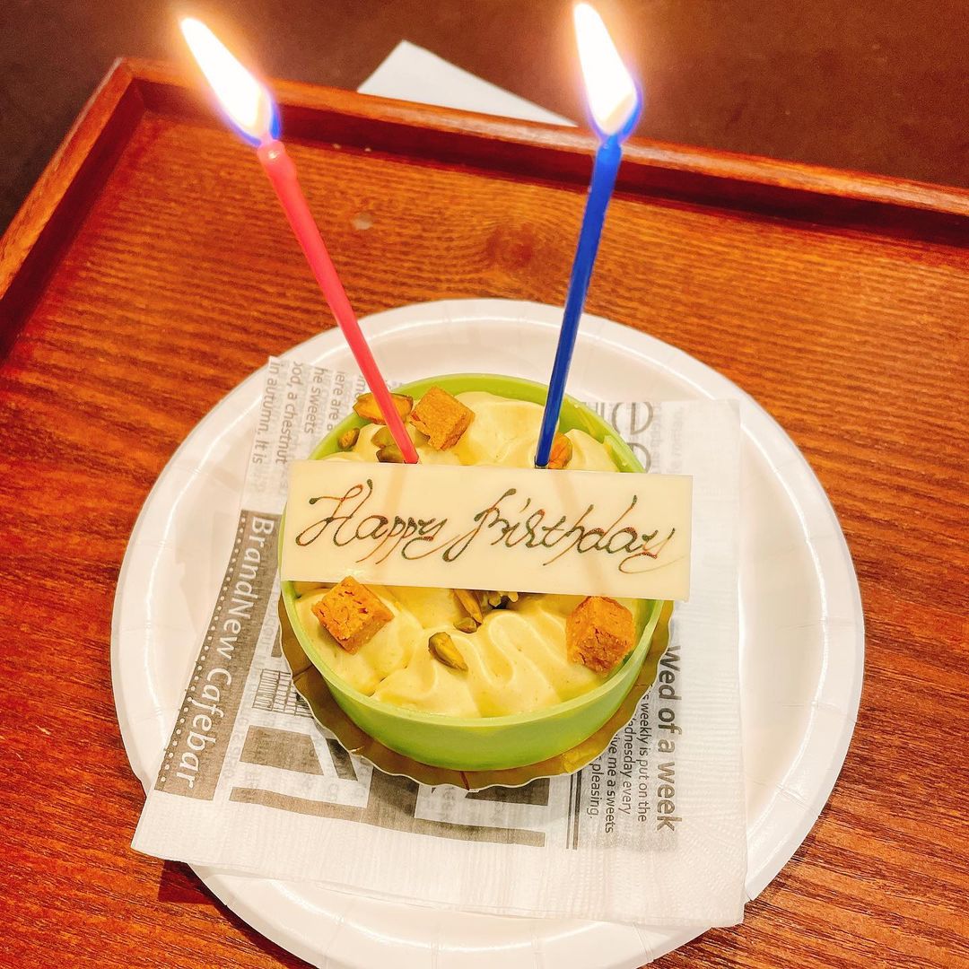 今年は髪色に合わせてピスタチオのケーキをいただきました🧑🏻🎤💚