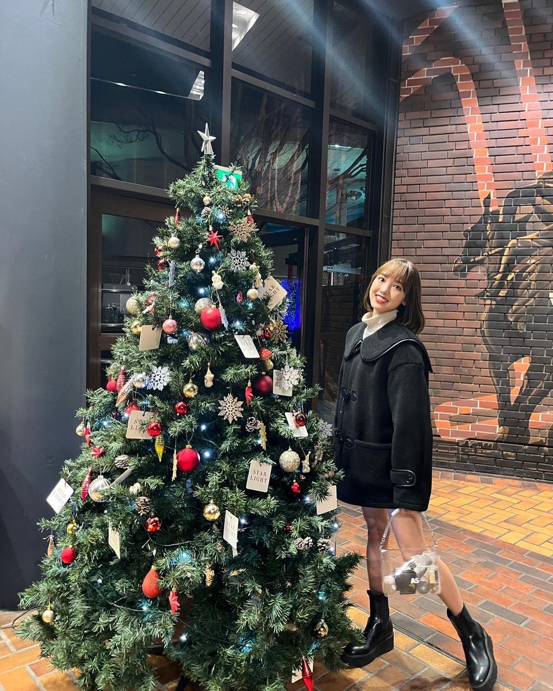 昨日ロケした場所に可愛いクリスマスツリーが🎄💓