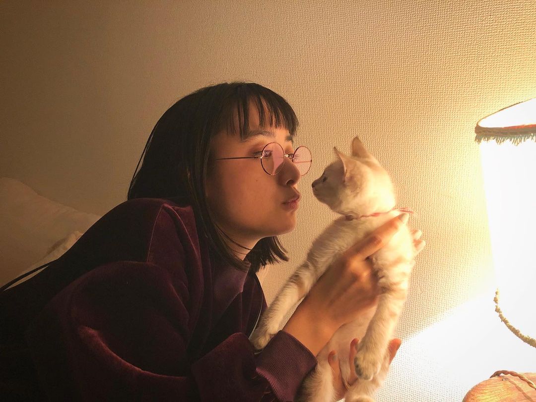 にゃんこに会いに。 アレルギー対策万全で。 猫アレルギーなのに、猫好き…… なんということ…… 写真撮る時だけマスク外しました(´・ ・`) 可愛かった… #mizuki_yamamoto#山本美月Mizuki YamamotoYamamoto Mizuki
