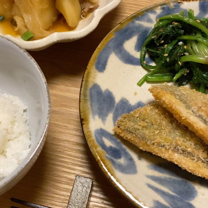 ふっくら表面パリパリザクザク鯵フライ🐟たまに無性に食べたくなって自分のために揚げます😂✨ そのほかはいつも通りの副菜たち。 最後の動画では水が飛んできます。😑😒 ・ ✔︎鯵フライ ✔︎ほうれん草の胡麻和え ✔︎ミニトマト ✔︎肉じゃが ✔︎新玉ねぎスライス ✔︎あさりのお味噌汁 ✔︎寒天ご飯 ・ #ゆりあごはん #今日のごはん #今日のご飯 #鯵 #アジフライ #腸活 #魚料理 #yuria_sato#佐藤優里亜Sato YuriaYuria Satoアジフライゆりあごはん今日のごはん今日のご飯腸活魚料理鯵