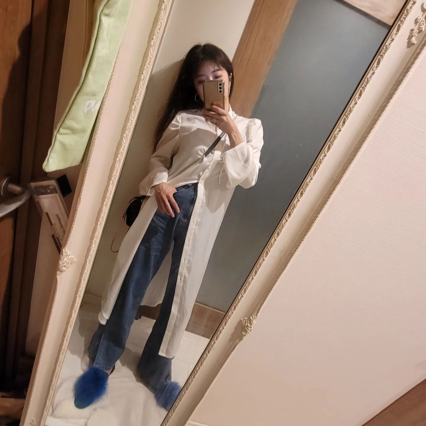 デニムはスリットが入ってるハイウエストのストレートの形👖🆕