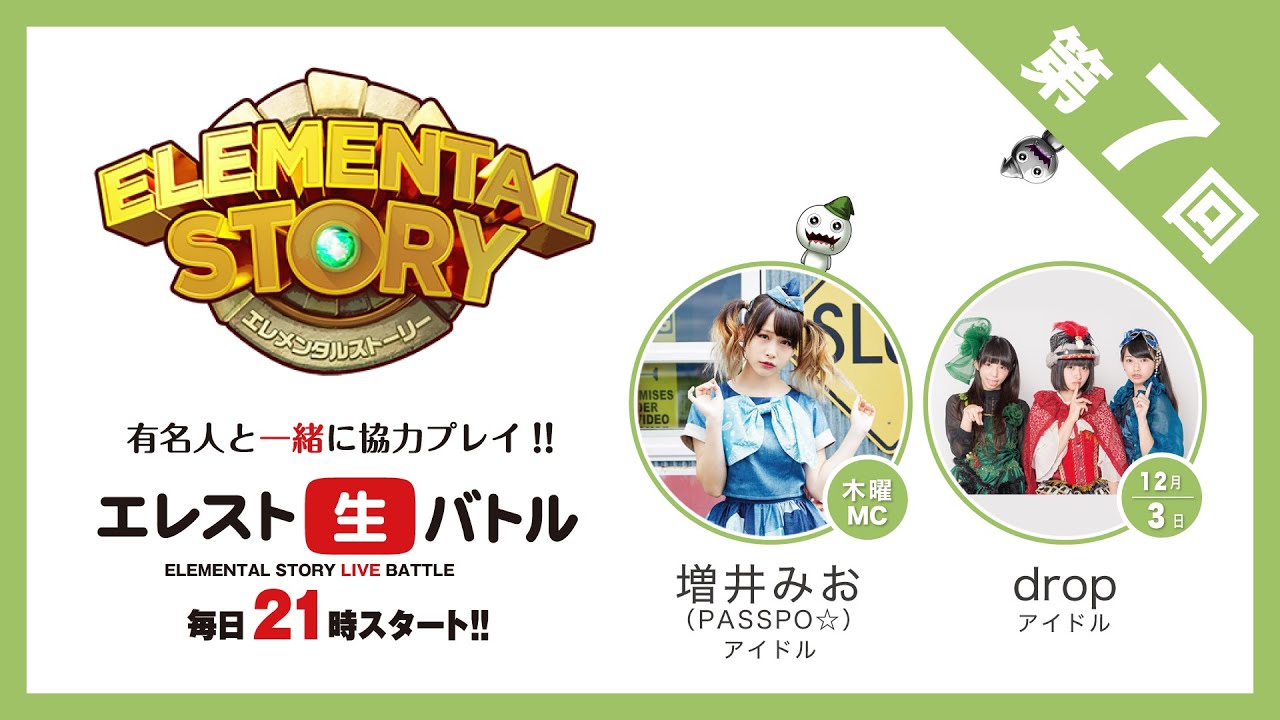 毎日21時から23時まで開催する、パズルRPG『エレメンタルストーリー』のライブ配信番組です。