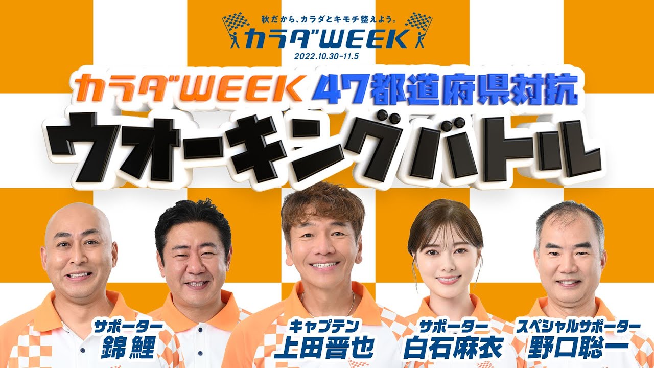 #カラダWEEK #上田晋也 #白石麻衣 #錦鯉 #野口聡一 #いきものがかり #歩いていこう #日テレスポーツ #日本テレビ #スポーツ #ウオーキングバトル #ウォーキング