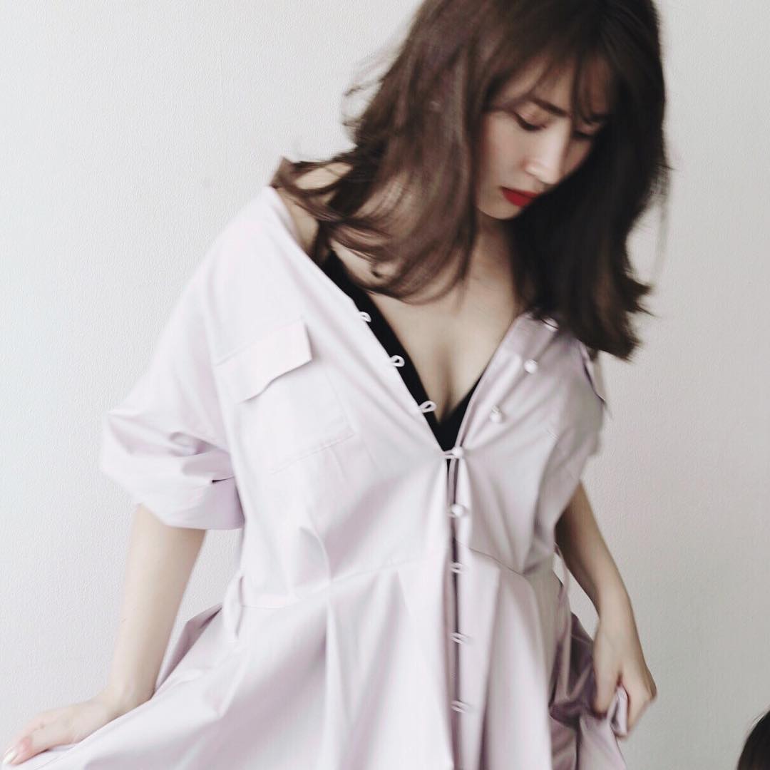 着崩してみた🌹 #Herlipto Cotton Maxi Shirts One-Piece 💜LIGHT PURPLE #haruna_kojima#kojiharunyan#kojima_haruna#小嶋陽菜Haruna KojimaHerliptoKojima Harunanyanchan22