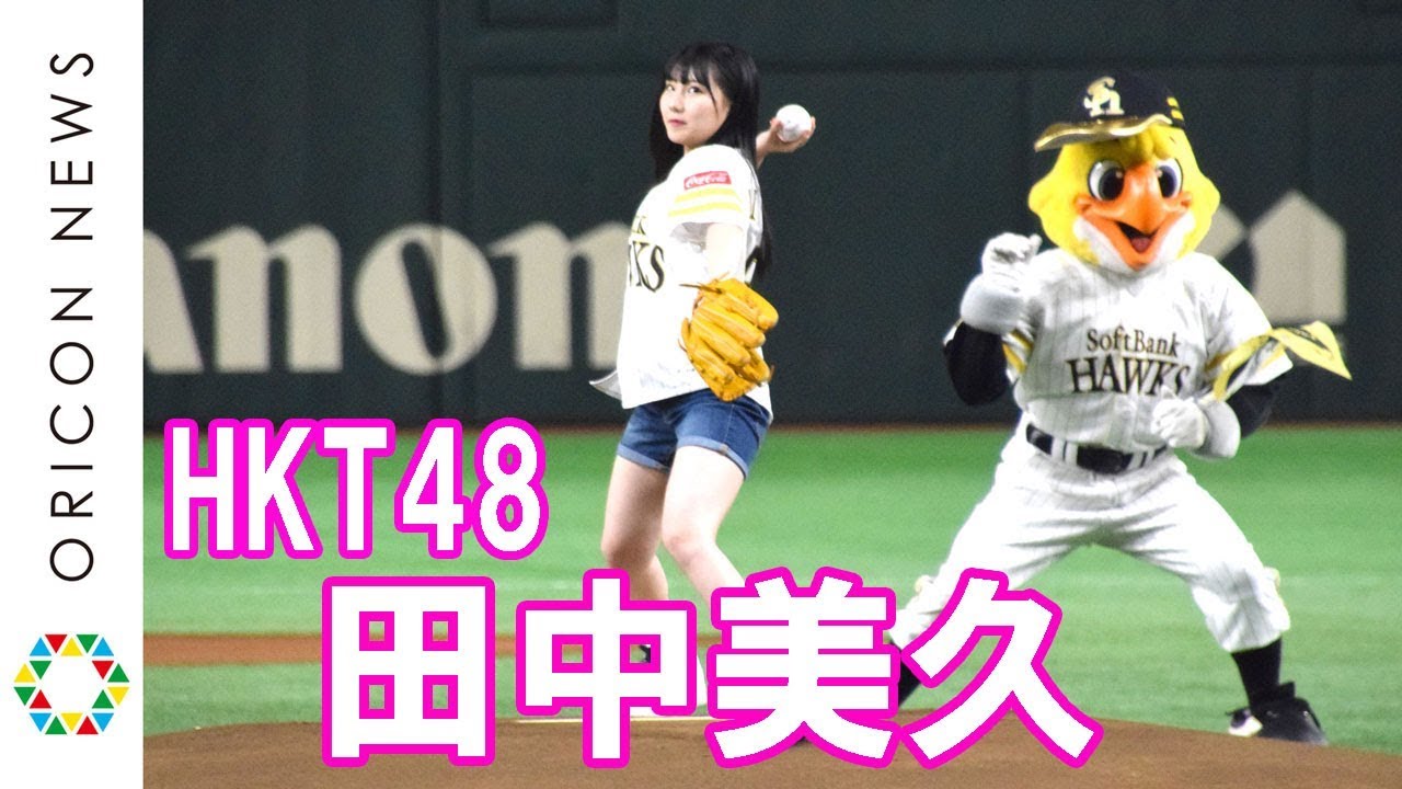 HKT48の田中美久が9日、東京ドームで開催されたソフトバンクホークス対日本ハムファイターズ戦で始球式を行った。きれいなワインドアップから放たれた球は捕手の手前で惜しくもワンバン。それでも自己採点は「99点」と高評価だった。