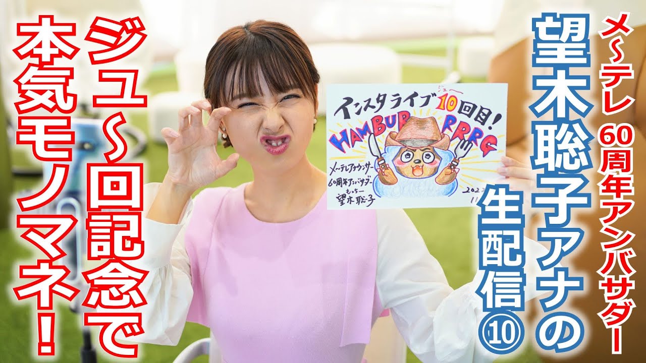 60周年の盛り上げ役「メ~テレ60周年アンバサダー」を務めるのは、望木聡子アナウンサー。今回は望木アナのライブ配信第10弾。10回記念の“ビッグ”なゲストが登場!さらに望木アナの“本気モノマネ”も必見です!!