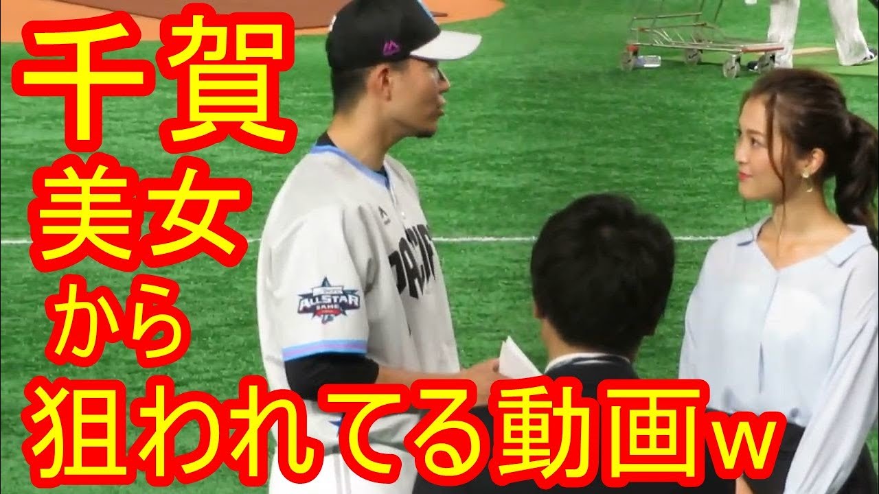 ホークス千賀投手が美女からインタビューされていました。