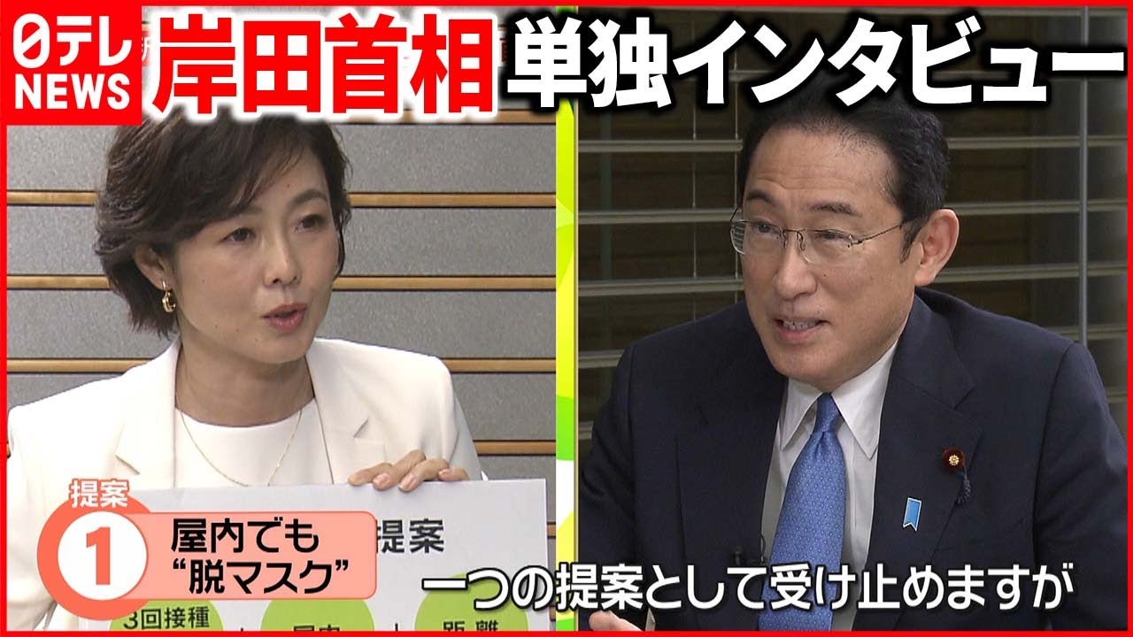 岸田首相が日本テレビの単独インタビューに応じました。新型コロナウイルスの水際対策の緩和、“脱マスク”の条件など、有働由美子キャスターが取材。「屋内でも“脱マスク”」の提案に対して、岸田首相の答えは?