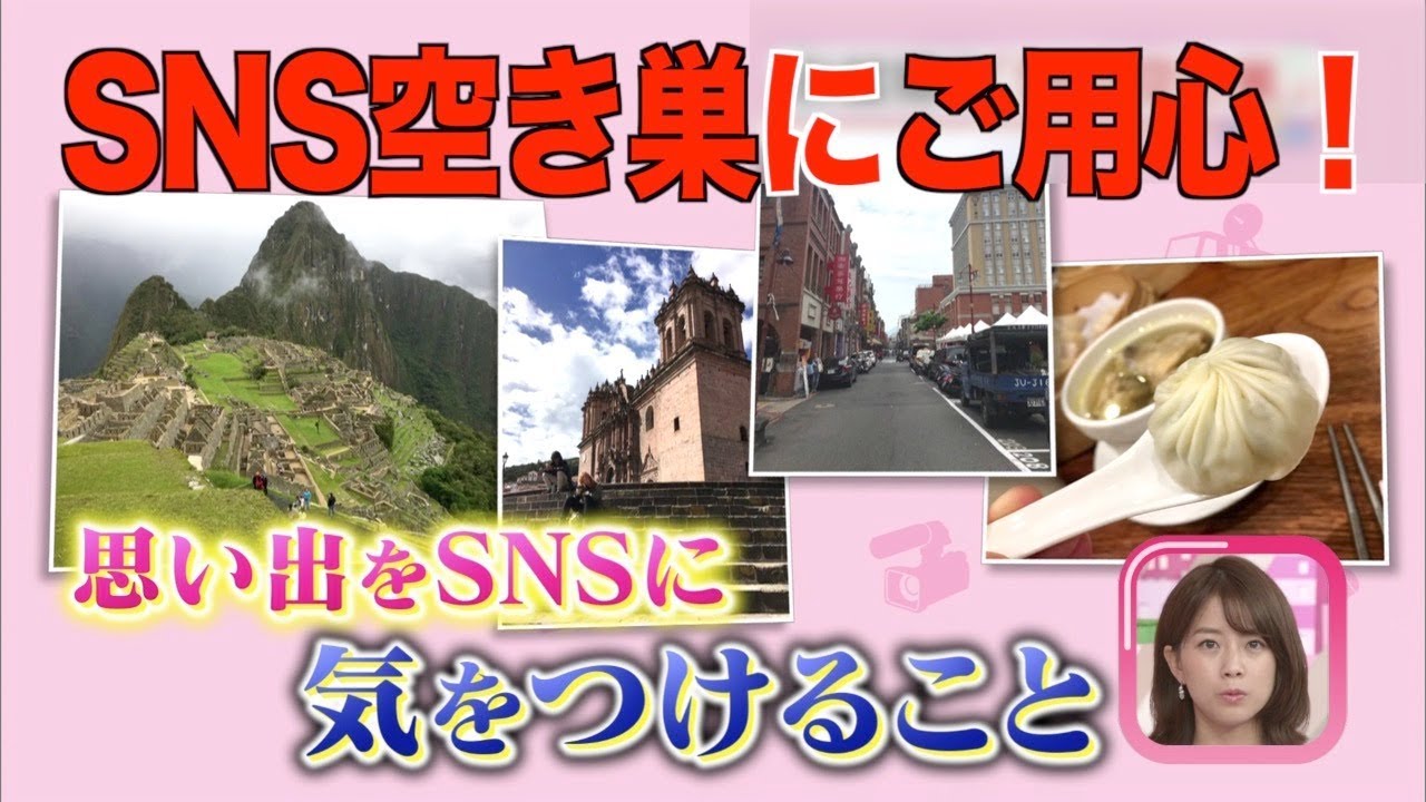 過去の投稿や現在の投稿内容、写真の背景の写り込み等を細かくチェックされると、自宅や留守にする期間、旅行先など様々な情報が「空き巣」の格好の餌食になることも。
