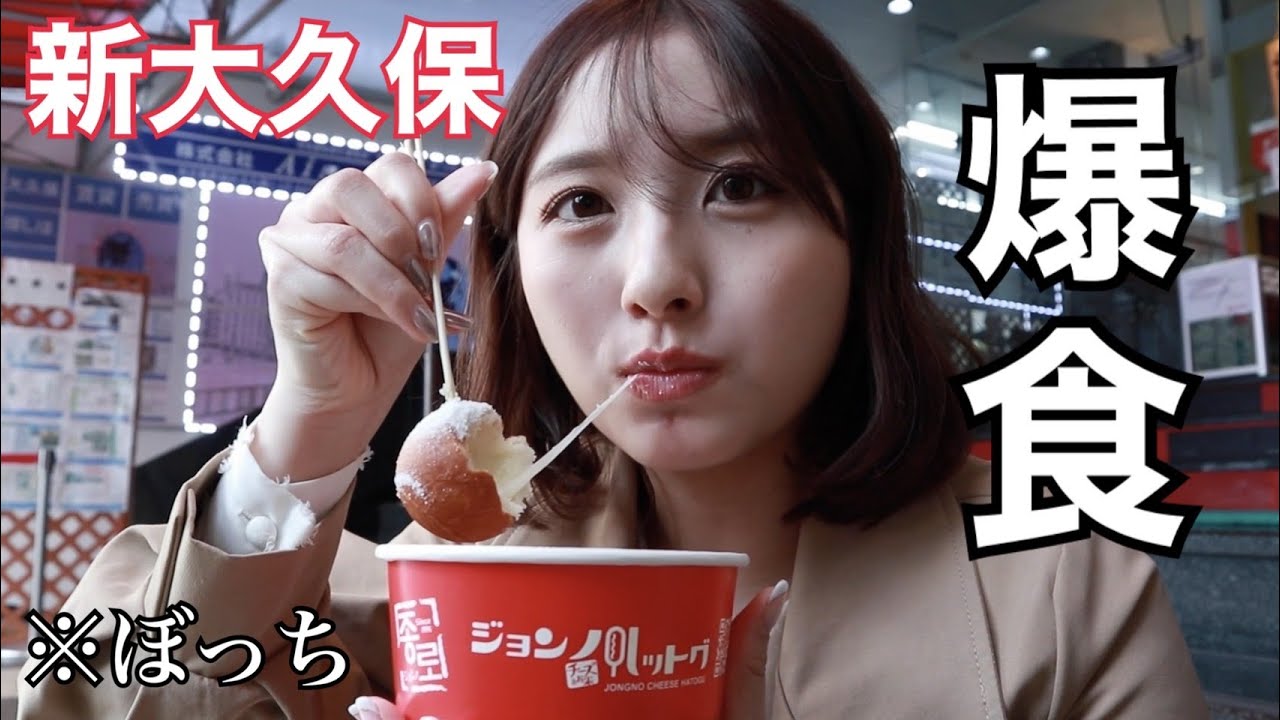 【新大久保vlog】夜まで罪悪感MAXの韓国料理食べ歩き🤤💗ワッフル/チーズボール/トッポギ/おでん/マカロン