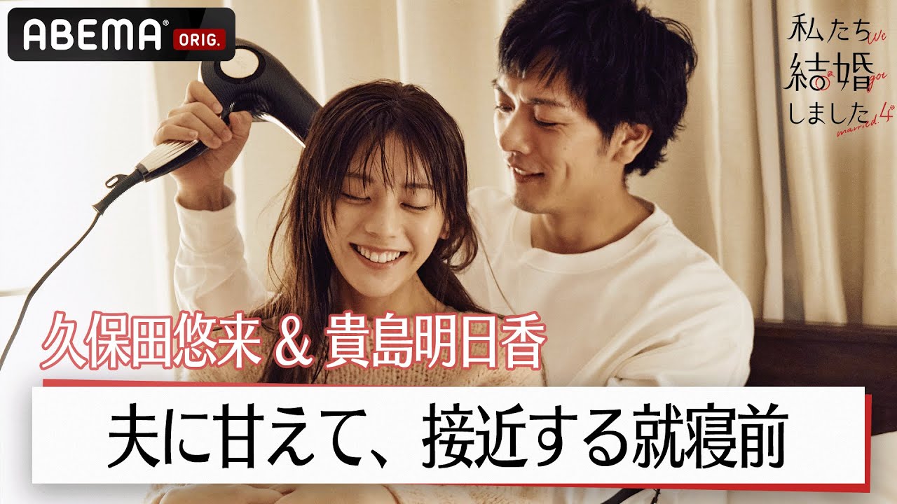 貴島明日香が夫・久保田悠来に甘える「髪乾かして」ベッドで急接近の2人は顔を合わせて…♡│【私たち結婚しました 4💍】毎週金曜よる11時からABEMAで放送中
