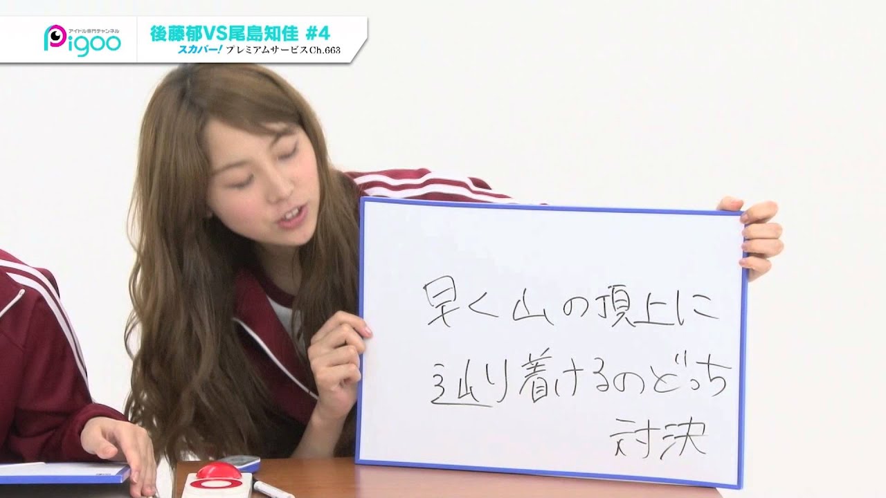 突然ですがここで問題です。これまで「お笑いセンス」、「演技力」を賭けて対決してきた後藤郁さんと尾島知佳さんですが、それでは、今回はいったいどんな「アイドル力」を賭けて対決したでしょうか?今回はこれまでと違い、スタジオにて撮影しました。なのでこれまでのような2人の大きな動きは見られませんが、別の部分でダイナミック?なところをお見せします!ヒントは「○倍晋三」「ガリレオ・ガリレイ」!
