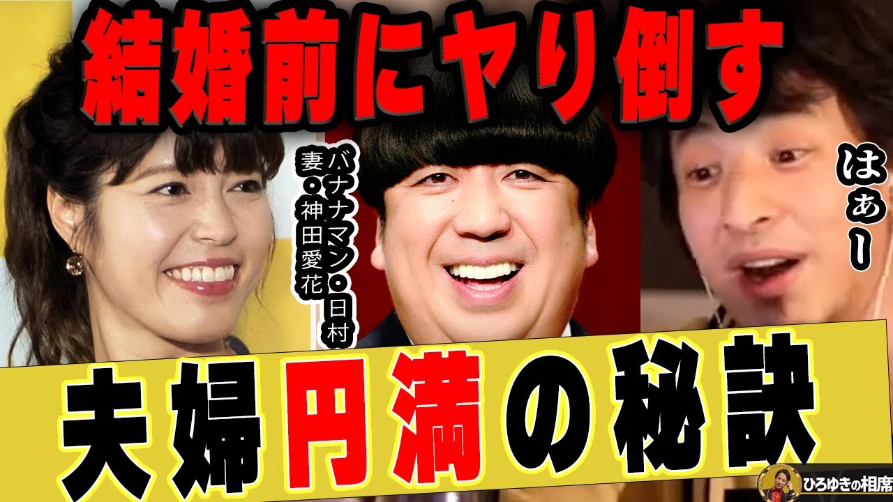 【ひろゆき】バナナマン日村勇紀さんと神田愛花さんが夫婦円満でいられる理由…結婚前が重要です【ひろゆき切り抜き 論破 質問ゼメナール 嫁 女子アナ フリーアナウンサー 結婚生活 乃木坂46 設楽統】