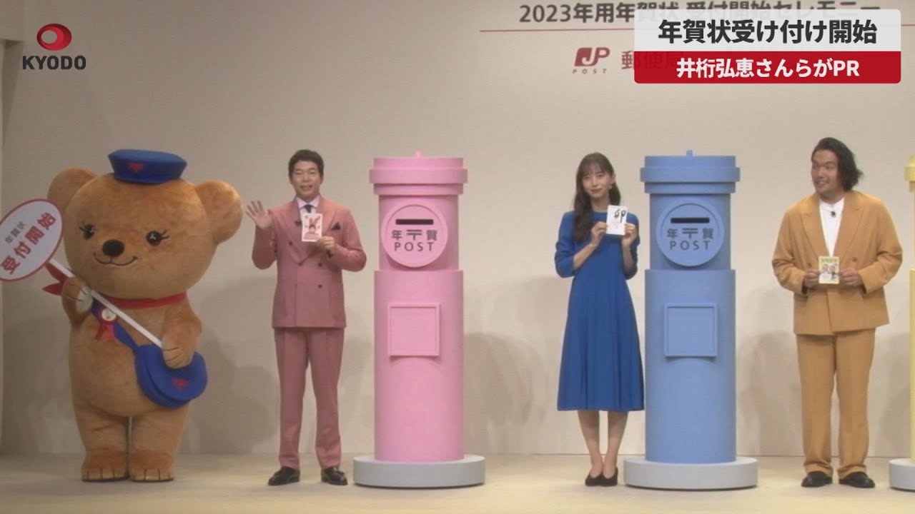 【速報】年賀状受け付け開始 井桁弘恵さんらがPR 2023年用年賀状の受け付けが15日、全国の郵便局で一斉に始まった。日本郵便が東京都内で開いたセレモニーには、俳優の井桁弘恵(いげた・ひろえ)さんやお笑い芸人の今田耕司(いまだ・こうじ)さんらが登場した。 2023actressKYODO NEWSお笑い井桁弘恵今田耕司俳優元日共同通信女優年賀状新年日本郵便正月盛山晋太郎芸人速報郵便郵便局 Write A Commentコメントを投稿するにはログインしてください。