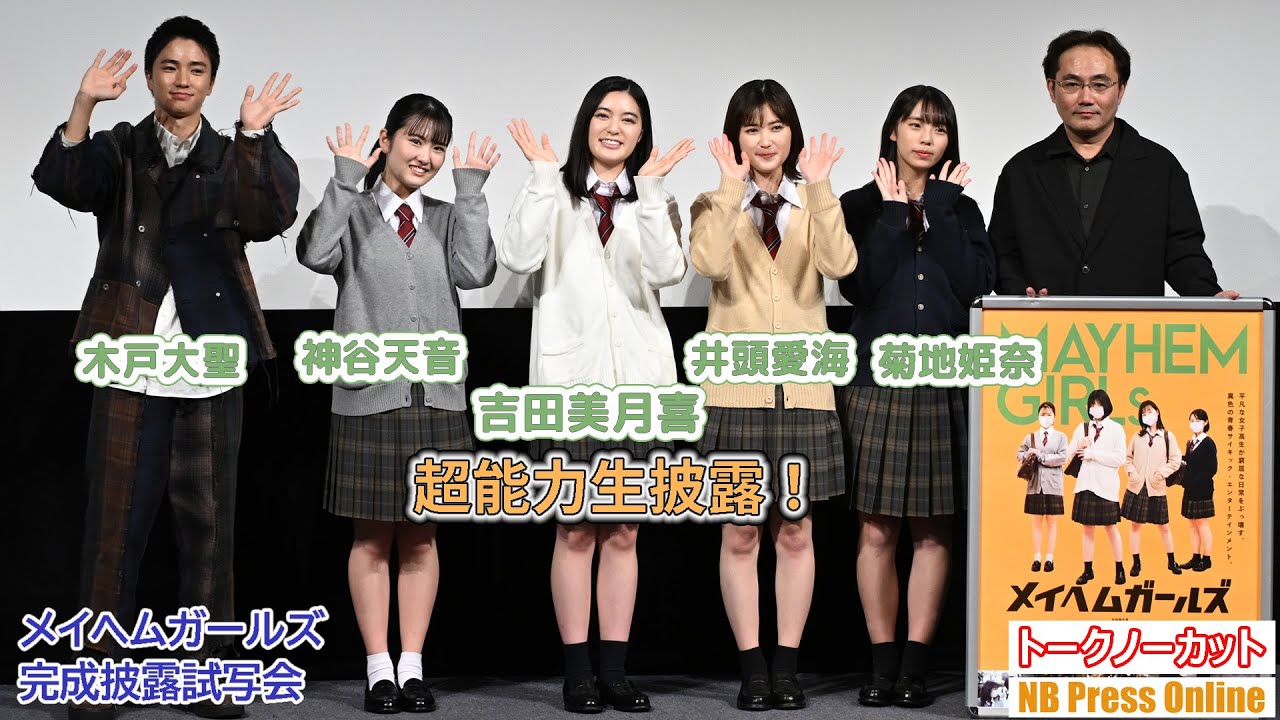 吉田美月喜、舞台挨拶中に超能力を生披露!井頭愛海、神谷天音、菊地姫奈、木戸大聖 映画『メイヘムガールズ』完成披露試写会イベント【トークノーカット】