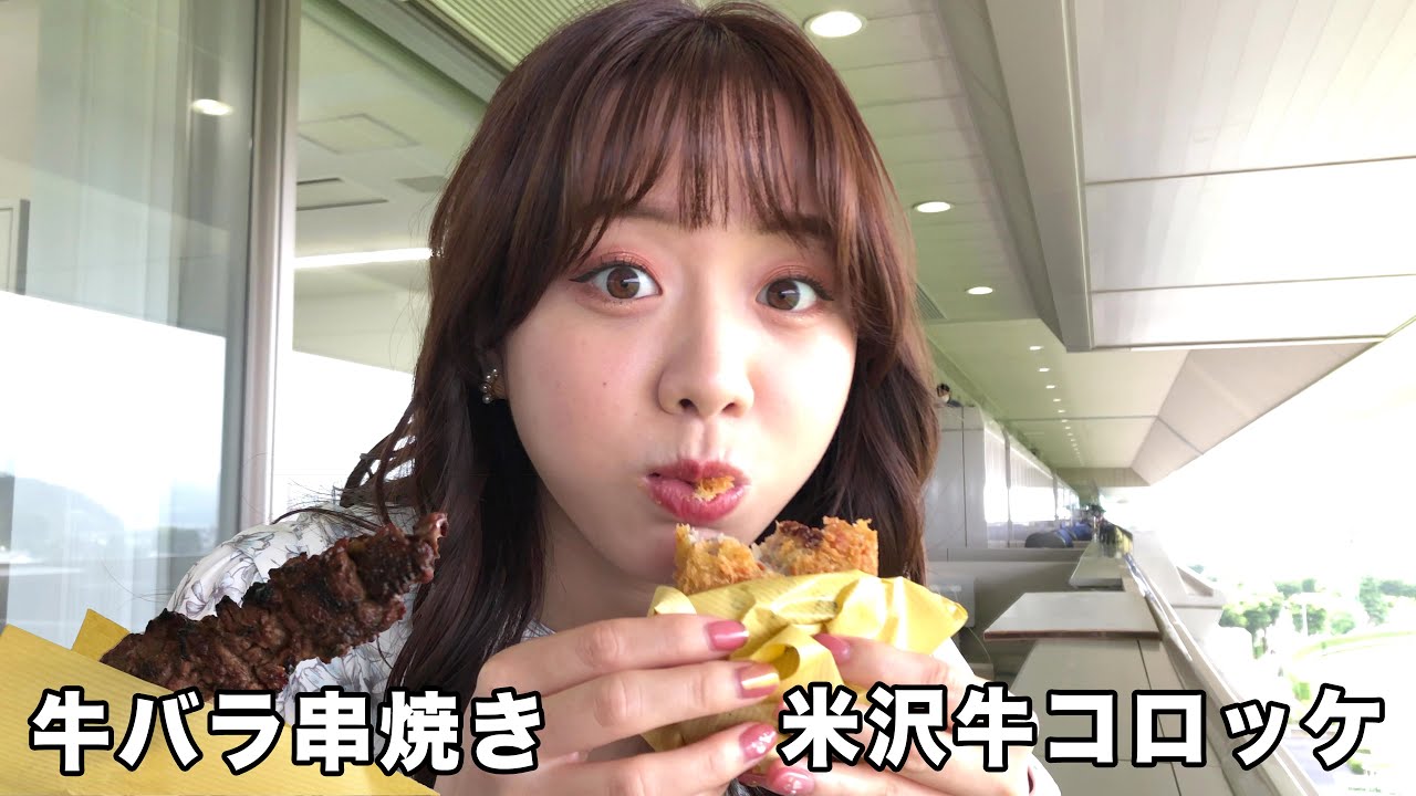 【森香澄の配信オリジナル企画】肉の上杉『牛バラ串焼き・米沢牛コロッケ』福島競馬場のグルメを紹介!