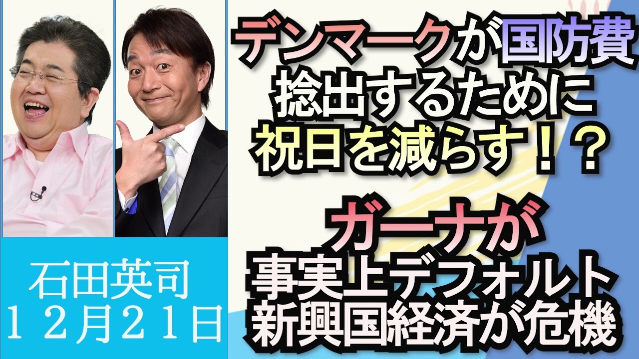 石田英司「デンマークが国防費を捻出するために祝日を減らす」「ガーナが事実上デフォルトに、新興国経済が危ない?」「ニホンザリガニ、来年1月から売買禁止に」12月21日