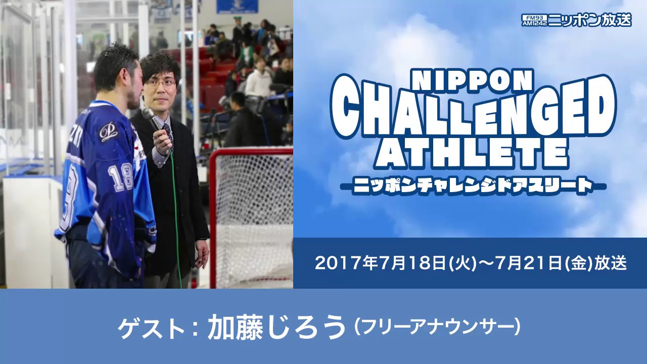 2017年7月18日(火)〜7月21日(金)は「氷上の格闘技の語りべ」こと、加藤じろうさんが登場しました。1969年、東京都調布市出身の48歳。フリーのスポーツ実況アナウンサーとして、様々な競技の実況を担当。特にアイスホッケーには造詣が深く、また下肢に障がいを持つ選手がそりに乗って戦うアイススレッジホッケーでも、国際大会の公式アナウンサーを長年担当。ルールや見どころの解説に加え、選手のキャラクターも紹介するなど、競技の魅力を伝える「語りべ」としても活躍中です。