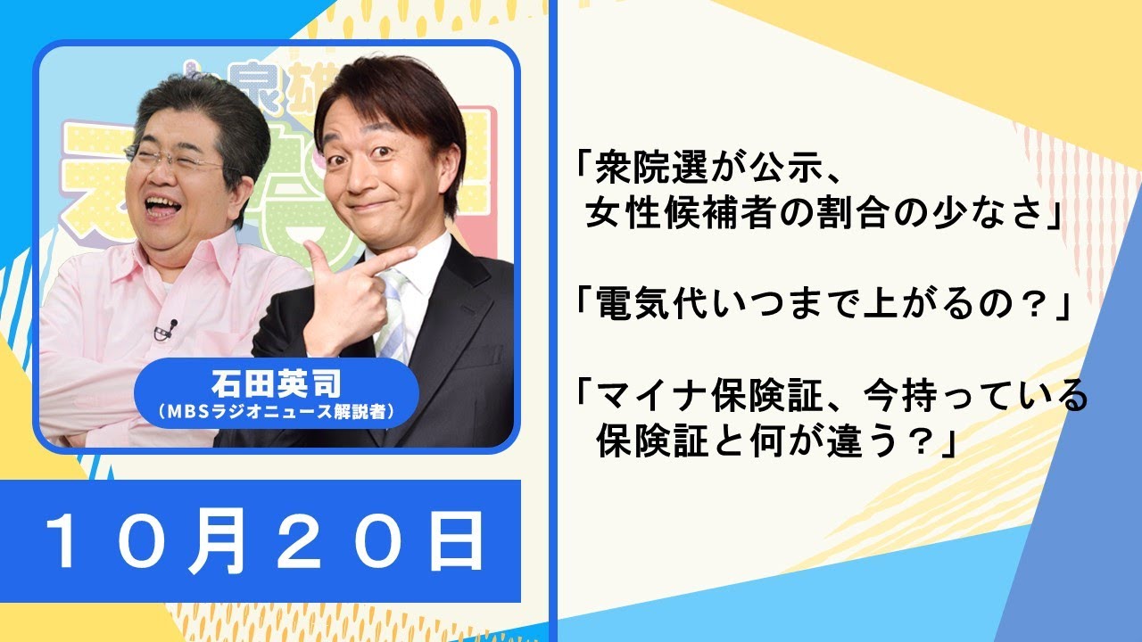 10月20日石田英司「衆院選が公示、女性候補者の割合の少なさ」「電気代いつまで上がるの?」「マイナ保険証、今持っている保険証と何が違う?」上泉雄一 松川浩子