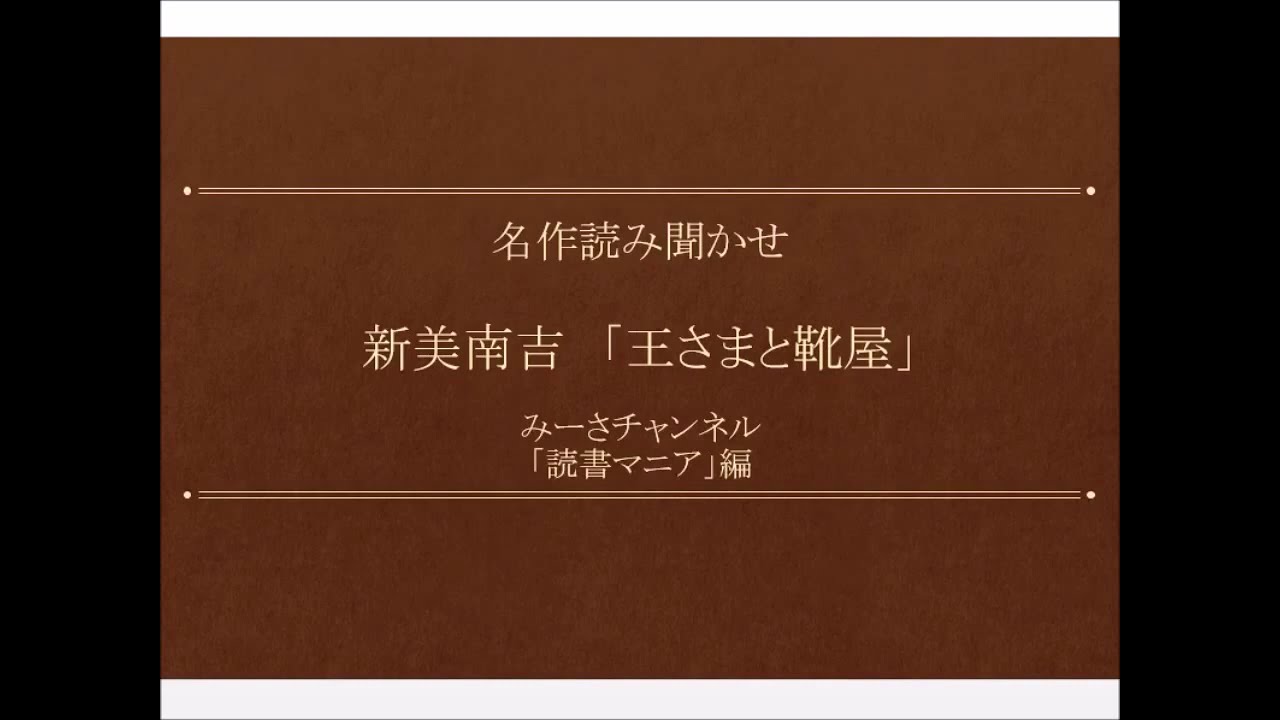 みーさチャンネル「読書マニア」編です。多くの皆さんが耳にしたことのある、味わい深い名作をゆっくりと読み上げますので、ご家族でお楽しみください。
