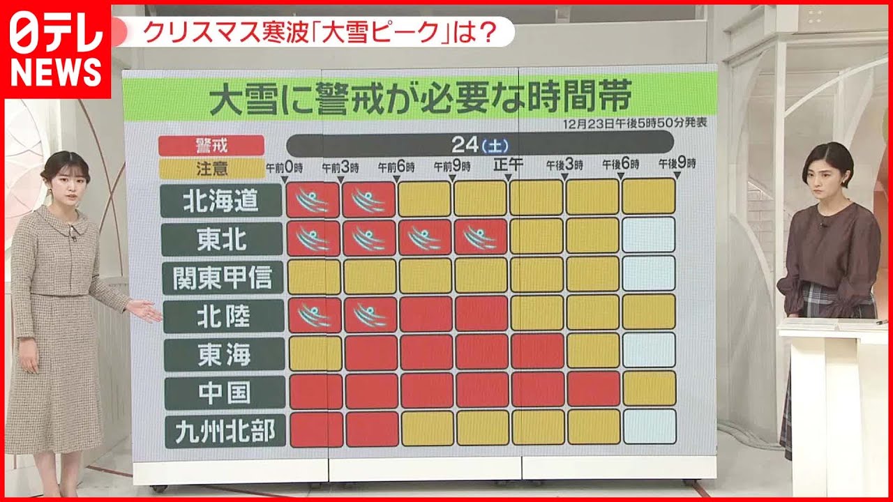 “クリスマス寒波”が列島各地を襲い、災害が起きるレベルの大雪となっている地域もあります。今回の大雪は「広範囲」「長期間」降ることから危険です。命を守る情報をお伝えしていきます。