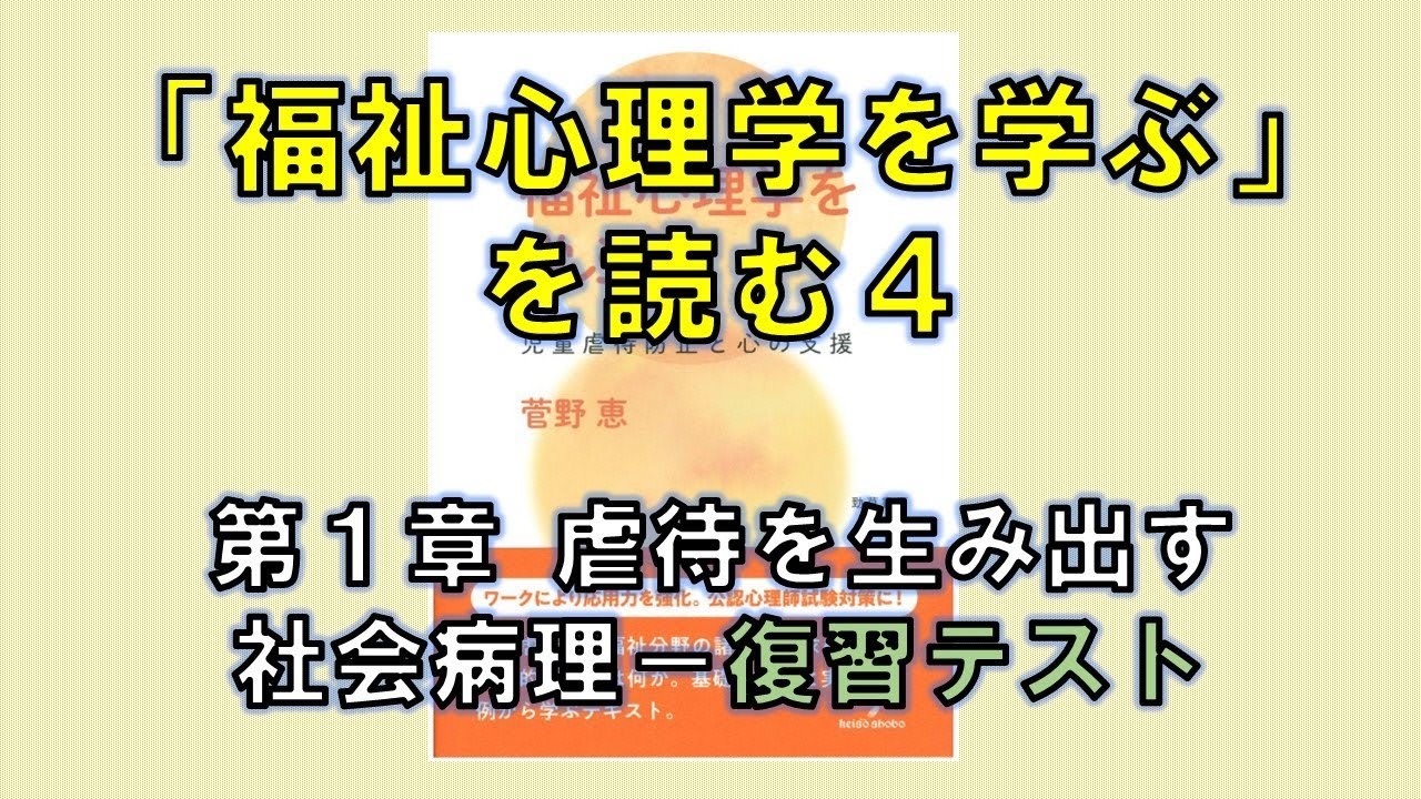 「福祉心理学を学ぶ」を読む④(第1章 虐待を生み出す社会病理 ― 復習テスト)