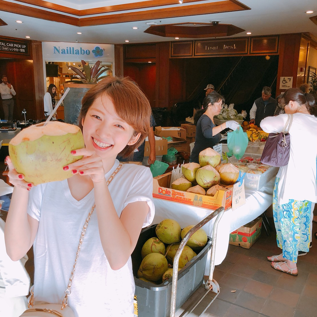 @朝香りほ: 憧れの、ココナッツまるごと飲むやつ #ハワイ#hawaii#ココナッツ…