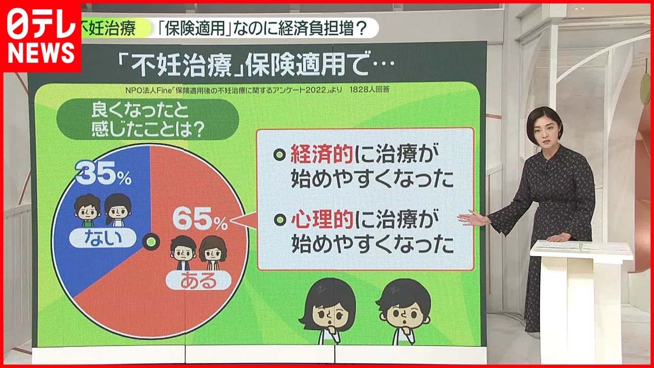 今年4月から不妊治療に保険が適用され、人工授精や体外受精、顕微授精などが、自己負担 3 割で受けられるようになりました。ただ、アンケートでは患者の7割超が保険適用で「悪くなった」と回答。以前より負担額が増えるケースがあるといいます。