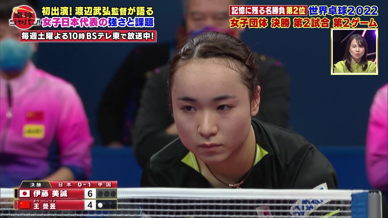 【第2位】渡辺武弘監督が選ぶ “記憶に残る名勝負ベスト3”|伊藤美誠 vs 王曼昱 世界卓球2022 女子団体 決勝 日本vs中国 第2試合第2ゲーム|卓球ジャパン!2022年11月26日