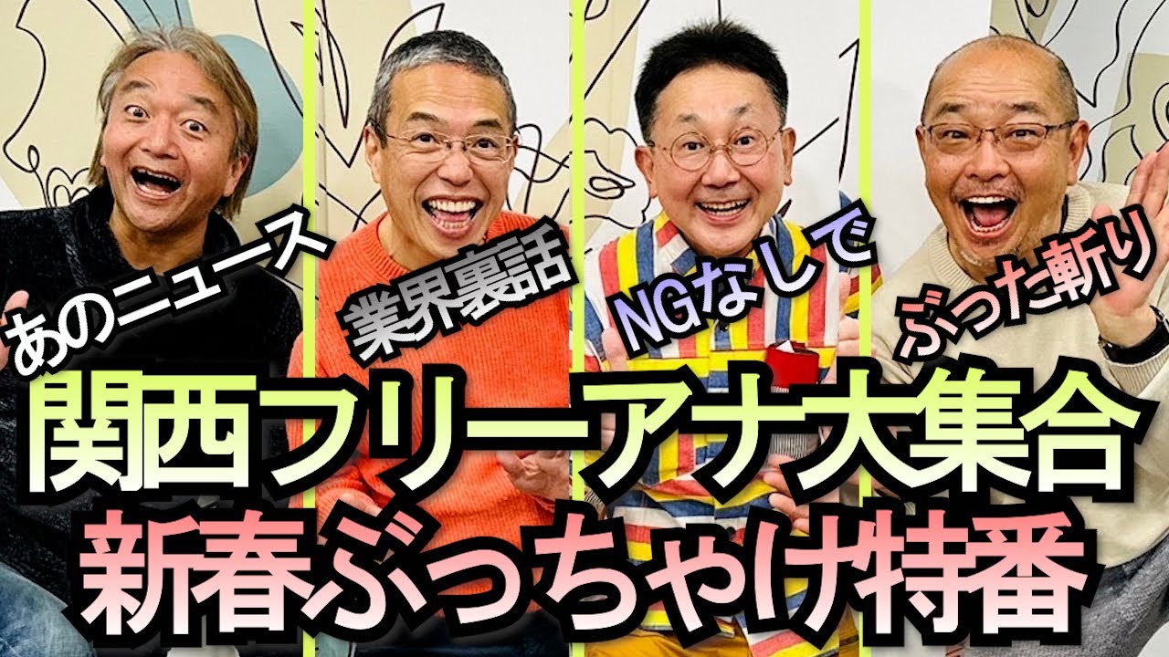 関西フリーアナウンサー大集合、あのニュースや業界裏側をNGなしでぶった斬り、森たけし、三代澤康司、山本浩之「上泉雄一のええなぁ!新春SP 男しゃべりなお正月 関西フリーアナウンサー大集合」1月3日