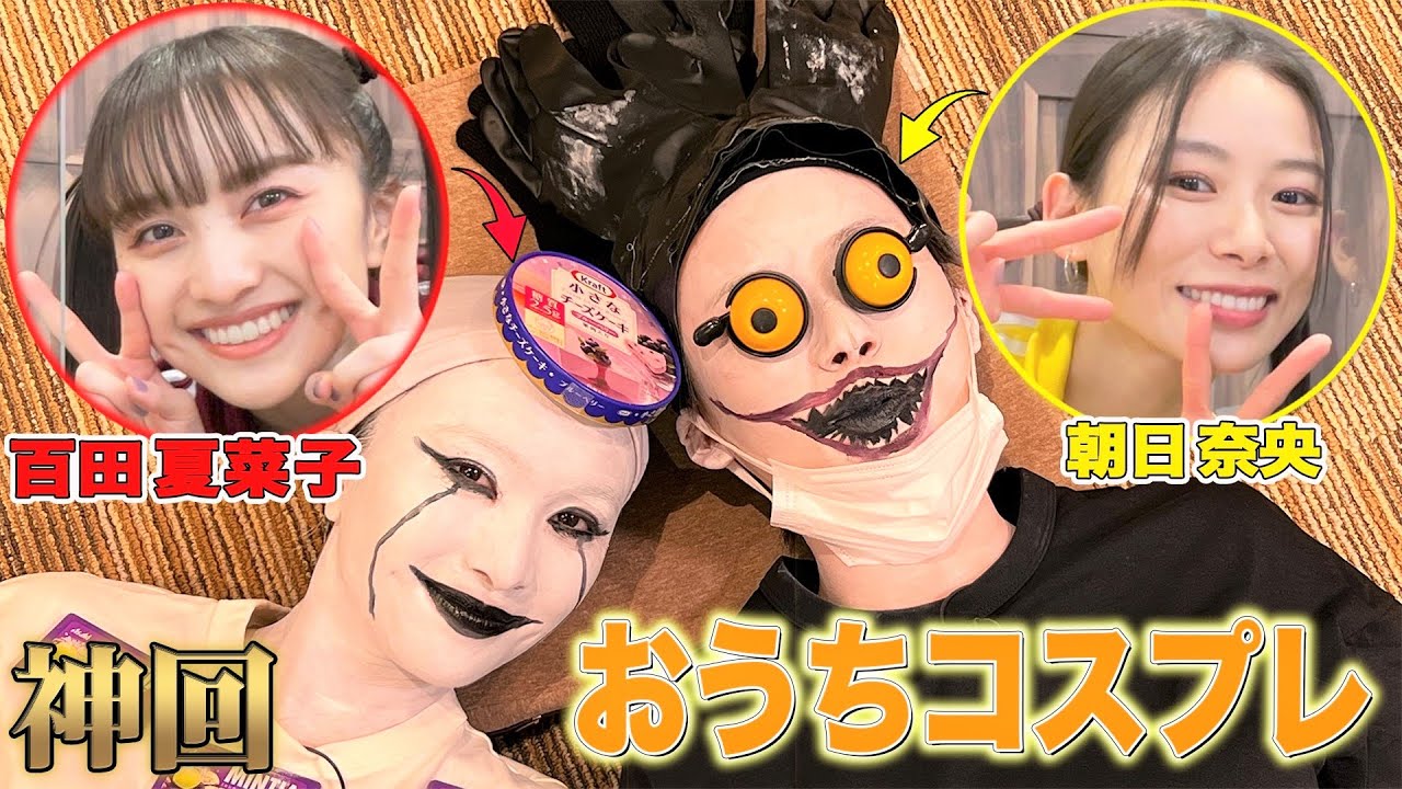 高校の仲良し同級生・ももクロ百田夏菜子と朝日奈央が日用品で簡単にできる「おうちコスプレ」に挑戦❗️朝日は、歯磨き粉と水飴でエイリアン❗️全身タイツとアルミホイルでローストチキン❗️