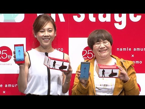 お笑いコンビ・ハリセンボンの近藤春菜とフリーアナの高橋真麻が、NTTドコモの8KVRアプリ「namie amuro×docomo VR stage」の発表会に出席した。このアプリは、スマホ用VRゴーグルを使って歌手の安室奈美恵のライブパフォーマンスが楽しめるもの。特別なスクリーンで映像を体験した2人は、「自分だけのために歌ってくれているみたい」「肌がきれいでかわいい」と興奮気味だった。共に安室の大ファンと公言している近藤と高橋。安室を意識したミニスカートとブーツ姿の高橋は、「雲の上の人。まさか私が安室さんにまつわるお仕事をさせていただけるとは!」とコメントした。また、ファンクラブ限定販売のTシャツを着て来場した近藤は、「(安室は)一言でいうと神。楽しさや喜び、興奮など、私の中の感情を引き出してくれる」と、安室への愛を熱く語っていた。