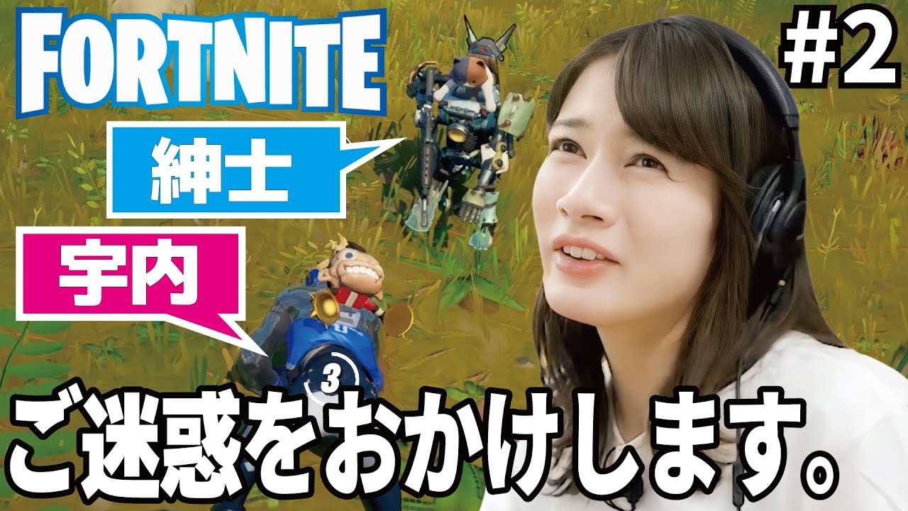 慣れないフォートナイトで苦戦する宇内アナ。右も左も判らない宇内アナに強力なチームメイトが登場!ダメージ喰らえば→体力回復アイテム、武器が不足すれば→強力武器をそっと渡してくれる紳士にキュン連発!