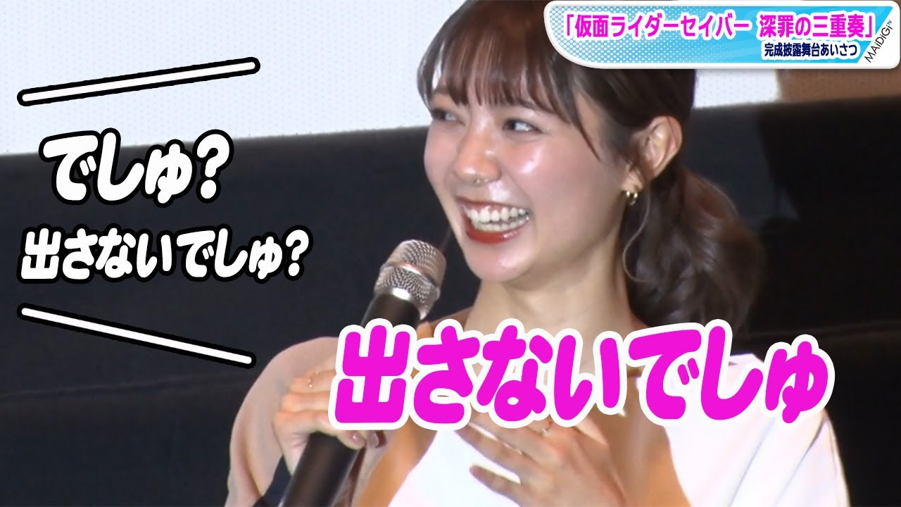 仮面ライダーセイバーヒロイン・川津明日香、脚は「出さないでしゅ」にキャスト総突っ込み 8年後の衣装で登場 「仮面ライダーセイバー 深罪の三重奏」完成披露舞台あいさつ
