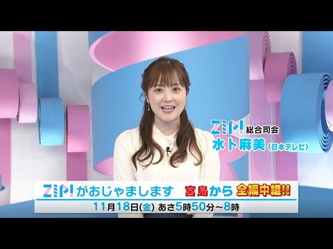 【宮島から「ZIP!がおじゃまします」】11月18日(金)の『ZIP!』は総合司会の水卜麻美アナウンサーを迎えて全編宮島から生放送!