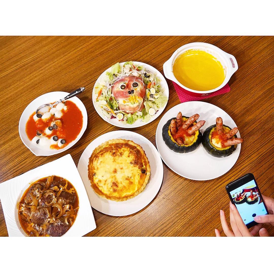 🎃. Halloween Party⭐️ シェフシンディー登場です👩🍳笑 メニューは パンプキンスープ 目玉ニョッキ パンプキングラタン ゾンビの指添え 骸骨サラダ 煮込みハンバーグ とっても盛り上がりました✌️🎃 はぁちゃんとかも居たけど写真撮るの忘れちゃった笑笑 また開催したいな☠️👻 #halloween#cooking #cindy_cinderella#cindy.cinderella#kazumi_urano#浦野一美cookinghalloweenKazumi UranoUrano Kazumi