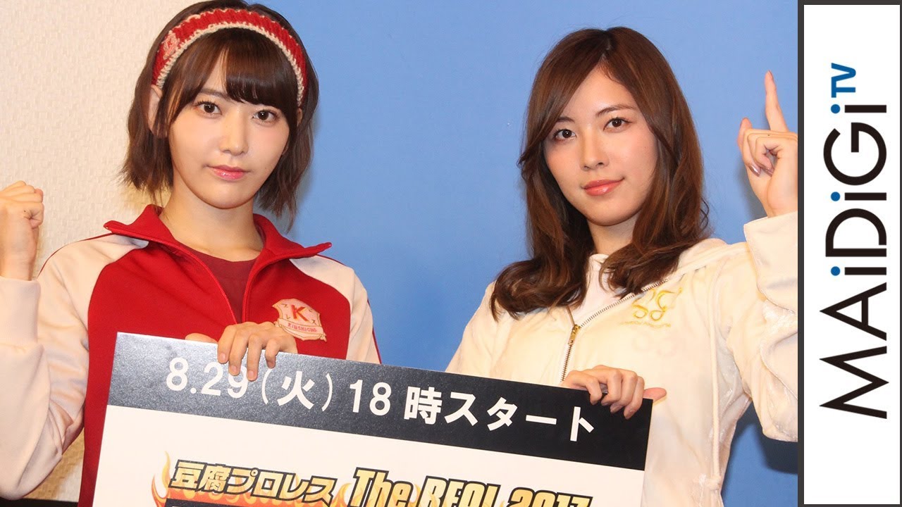 アイドルグループ「AKB48」のメンバーらが女子プロレスに挑む連続ドラマ「豆腐プロレス」(テレビ朝日系)のリアルイベント「豆腐プロレス The REAL 2017 WIP CLIMAX in 後楽園ホール」(8月29日開催)がスカパー!で生中継されることが8月16日、発表された。同日、東京都内で会見が行われ、イベントのメインとなるタッグマッチで対戦するSKE48の松井珠理奈さん、HKT48の宮脇咲良さんが出席した。