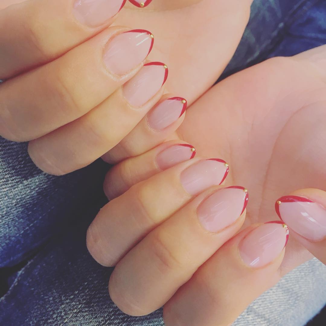 . . nwenail . ハンドフットお揃いの色ですっ . 一気に秋感。 . 代官山のRUBY&ONYXさんで。 早いし可愛いしありがとうございます♡ . #nail #nwenail #変形フレンチ #秋ネイル #shizuka_oya#大家志津香nailnwenailOya ShizukaShizuka Oya変形フレンチ秋ネイル