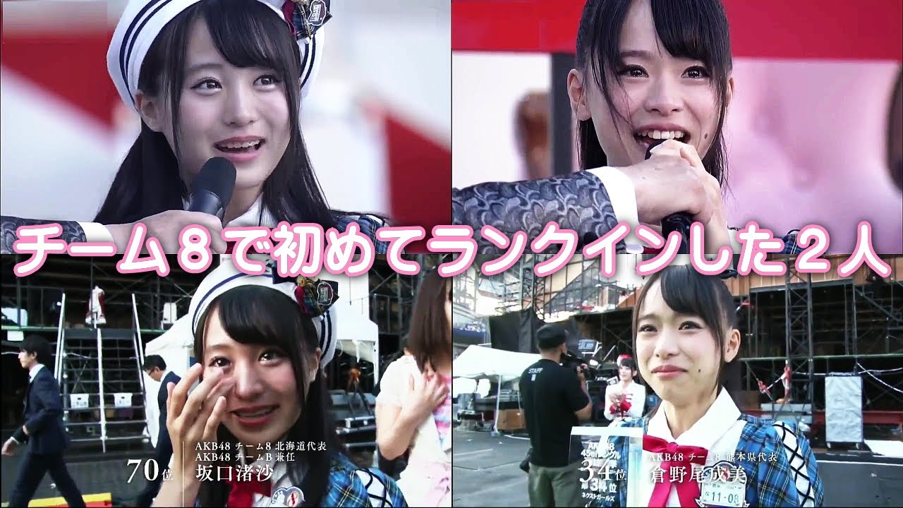 【坂口渚沙と倉野尾成美】チーム8から初めてAKB48選抜総選挙にランクインした偉大な先駆者の2人 / 速報&スピーチ「チーム8でCDデビューがしたい!」 AKB48 45thシングル選抜総選挙