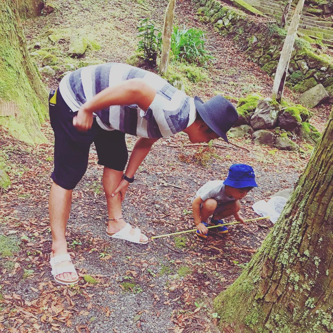 一生懸命探したけど見つからなかったカブトムシ🍉 ・ 昼間は寝てるんだってね💫 8月中旬にはもうなかなかいないんだってね👀 君達カブトムシ見つけても飼えないけどね❤️(母ちゃん虫苦手) ・ 見つけるまでの過程が大事🌙 わたしが入り込めない二人の世界、いいね👬💫 来年は蜜を仕掛けて夜か早朝見に来よう🌻 ・ #はじめてのなつやすみ #父と息子 #yuria_sato#佐藤優里亜Sato YuriaYuria Satoはじめてのなつやすみ父と息子
