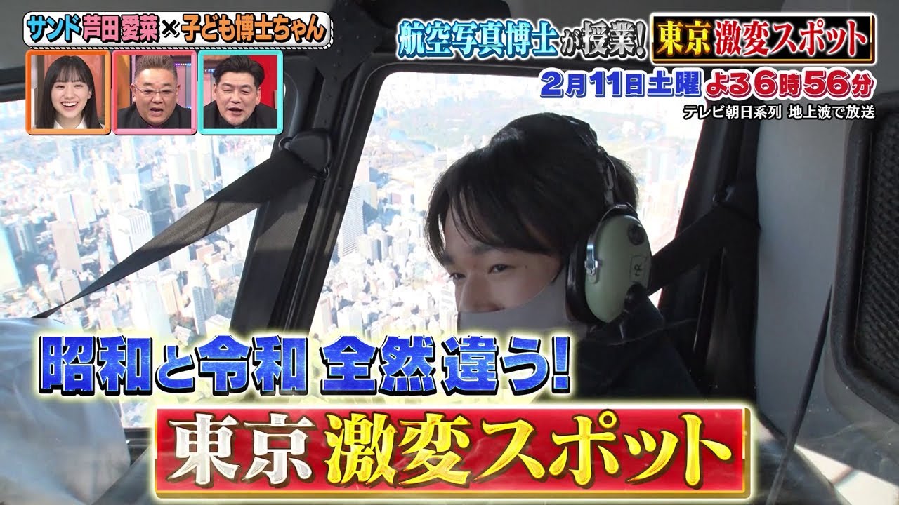 2月11日(土)サンドウィッチマン&芦田愛菜の博士ちゃん 航空写真博士ちゃんが昭和と令和で全然違う東京激変スポットを空から視察&爆笑授業!