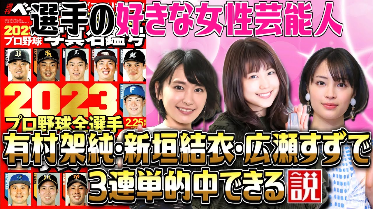 【2023】プロ野球選手の好きな女性芸能人 有村架純・新垣結衣・広瀬すずで3連単的中できる説