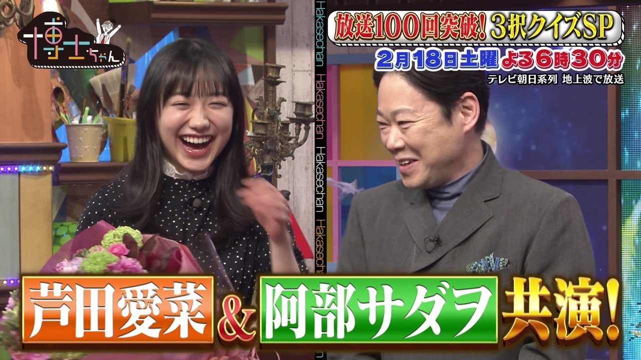 2月18日(土)サンドウィッチマン&芦田愛菜の博士ちゃん 愛菜ちゃんと阿部サダヲが9年ぶりに共演!放送100回突破記念SP!目利き3択クイズに挑戦!