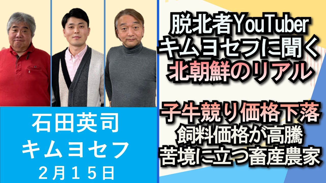 石田英司、キム・ヨセフ「脱北者YouTuberキム・ヨセフに聞く北朝鮮のリアル」「子牛のせり価格が下落。苦境に立つ畜産農家」2月15日